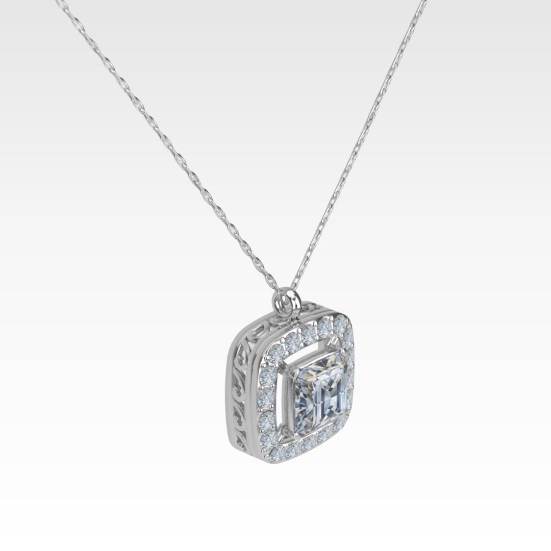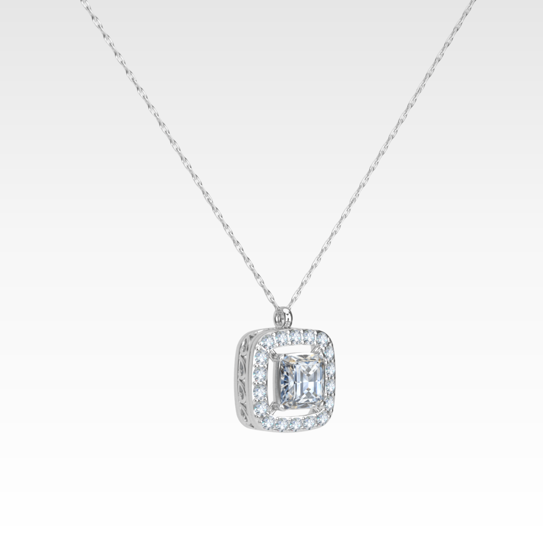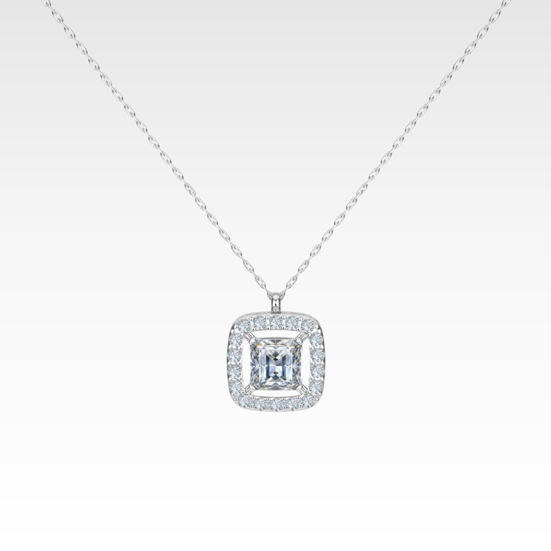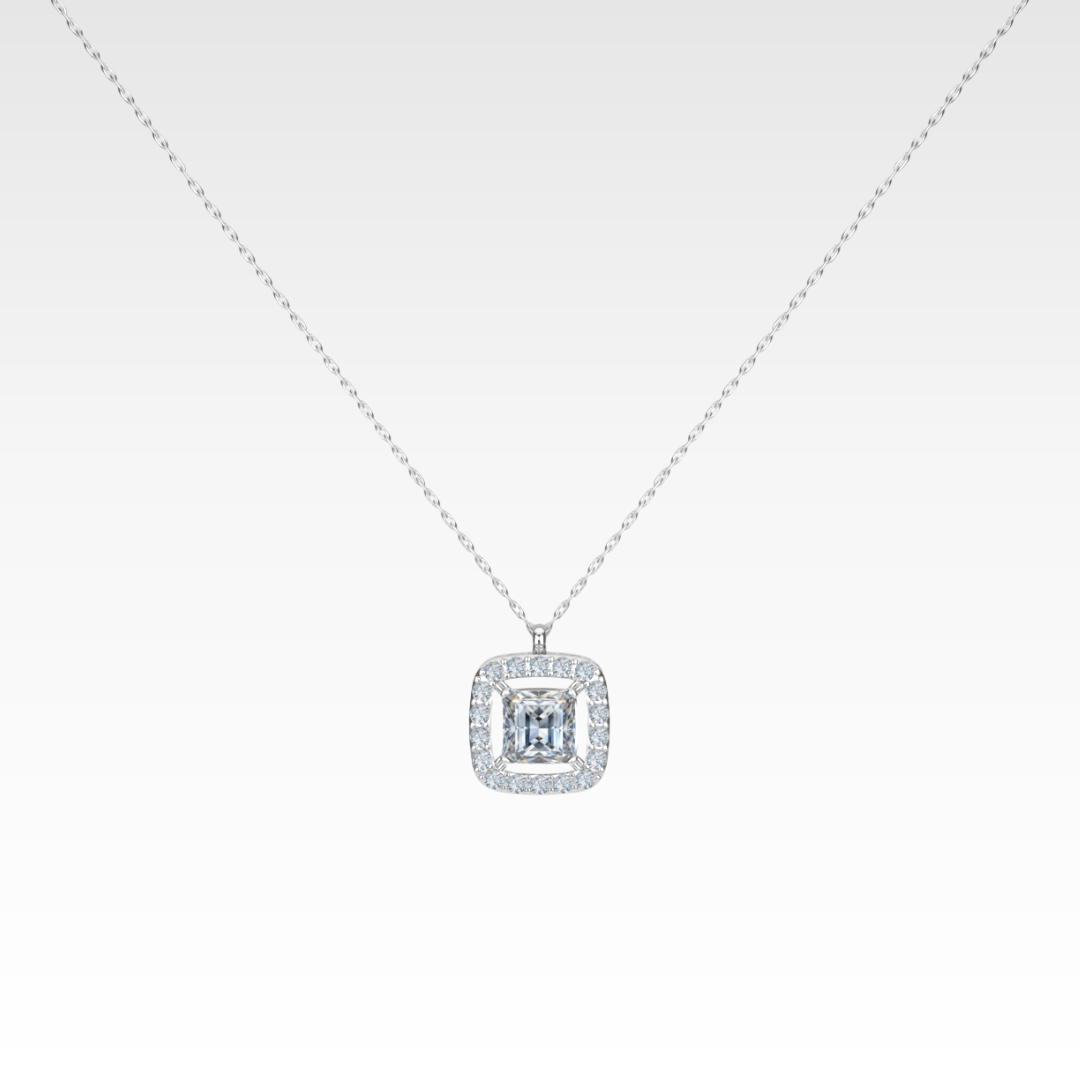 At its heart lies a radiant white stone centerpiece, cut with precision to capture light from every angle, and framed by a dazzling halo of smaller stones for added brilliance. The square halo design evokes a sense of heritage and sophistication — a modern tribute to classic fine jewelry.