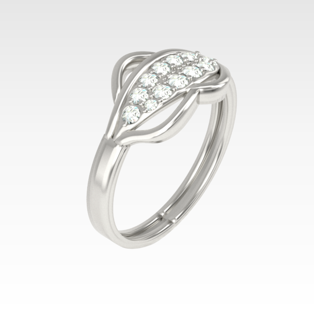 The centerpiece features a graceful marquise-inspired design adorned with sparkling cubic zirconia stones, meticulously set to reflect light with every movement. The soft, flowing curves embrace the stones like a delicate kiss — a symbol of elegance, love, and refined taste.