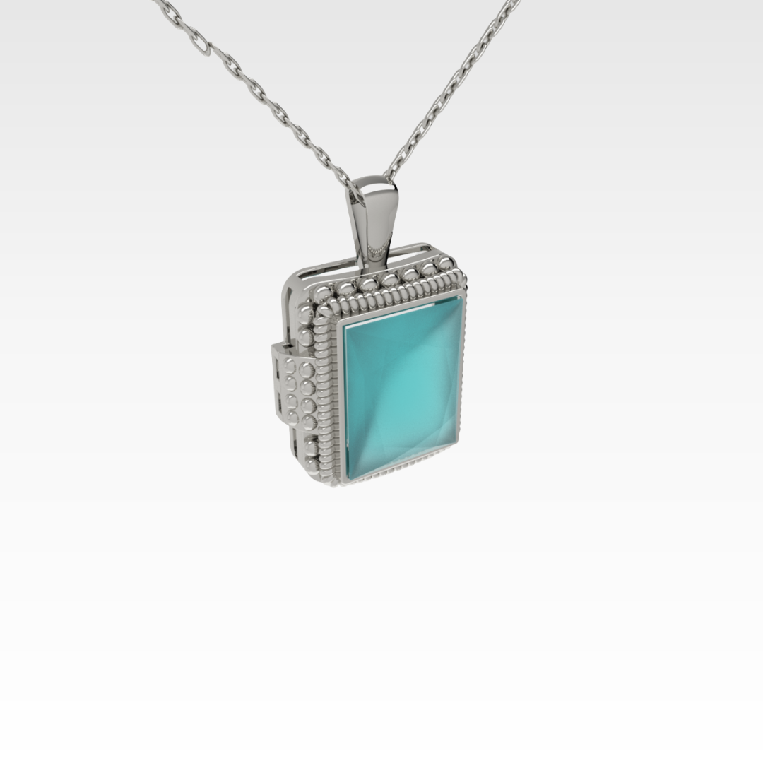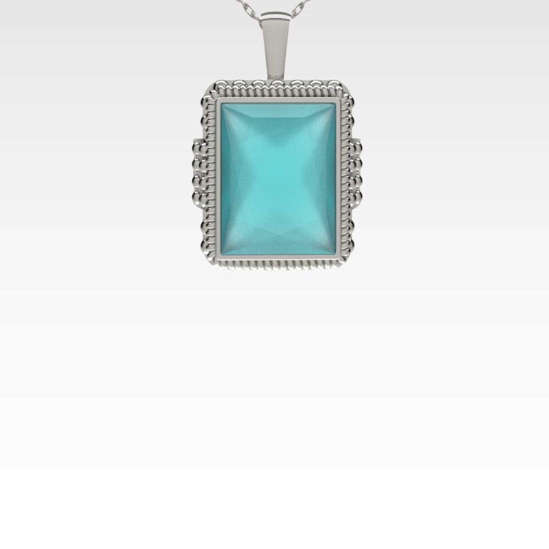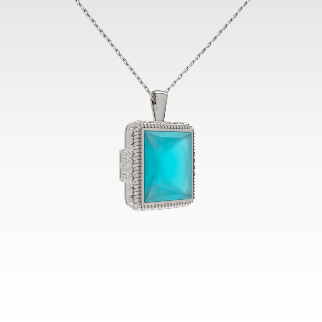 The Ocean Embrace Pendant is a statement piece that radiates calm, confidence, and style. The rectangular turquoise zirconia evokes the depth and clarity of tropical waters, while the intricate silver setting adds a touch of antique charm. Whether worn on its own or layered, this pendant brings a splash of color and character to any outfit.