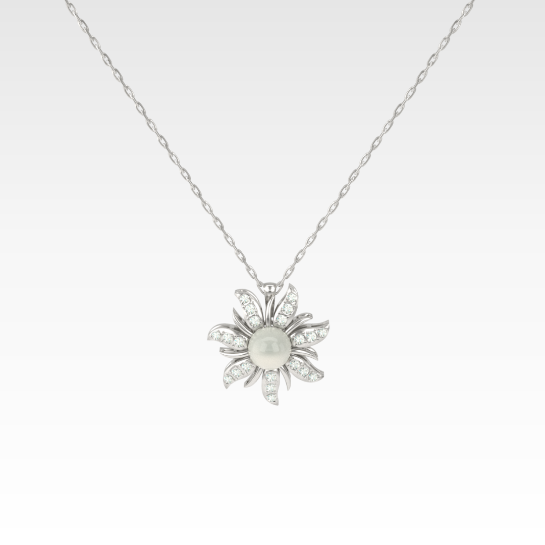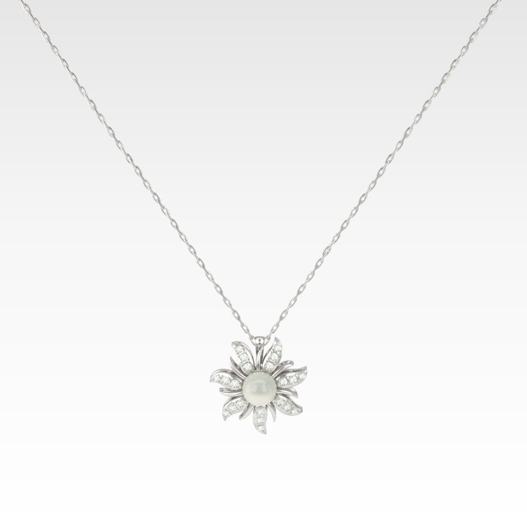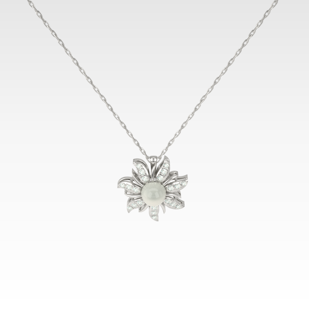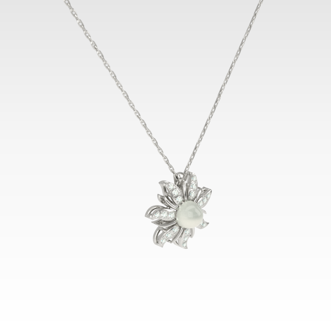 Central luminous pearl with gemstone-set petals