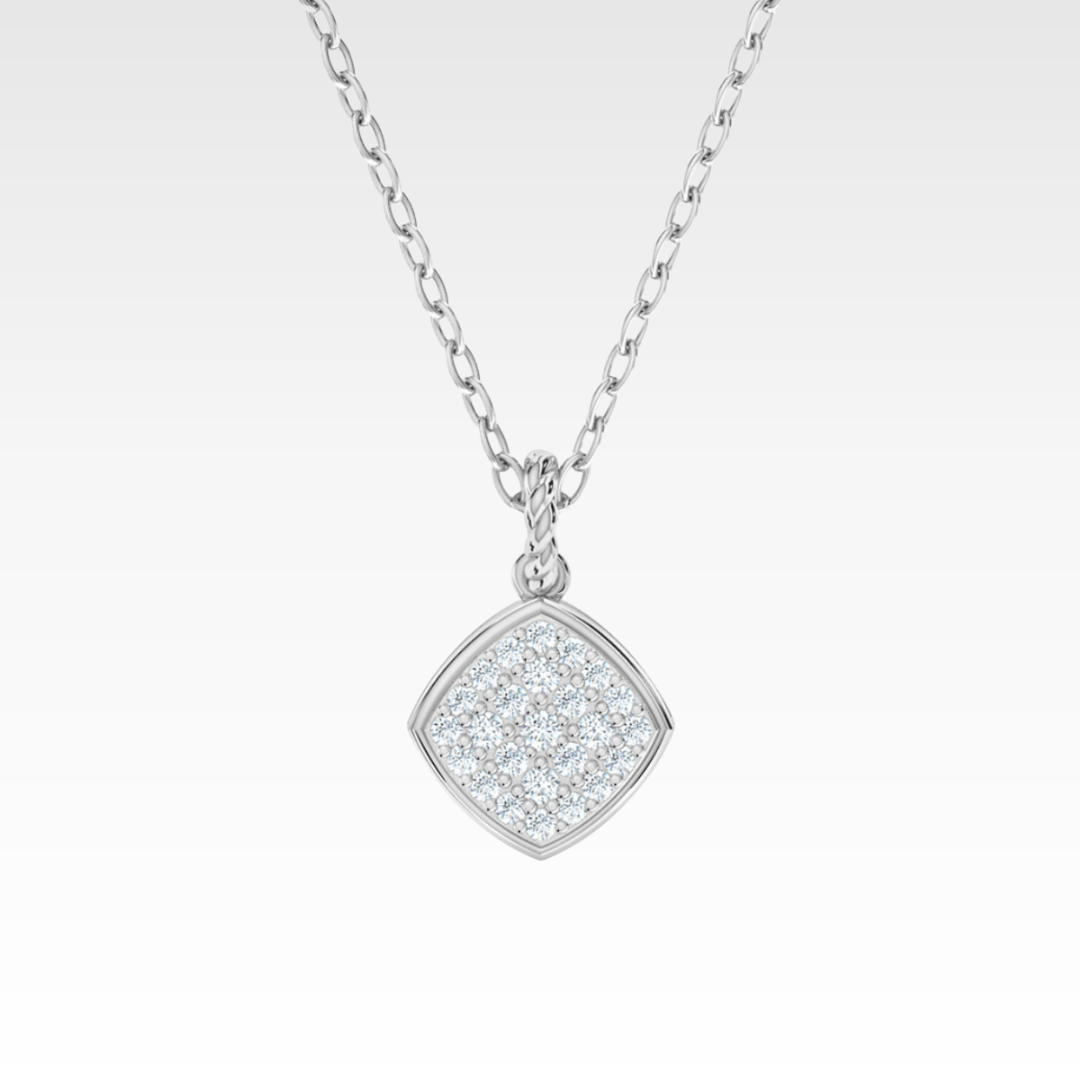 Let your look speak of timeless elegance with The Pure Promises Pendant. Handmade in genuine 925 sterling silver, this radiant piece features a cushion-shaped charm encrusted with a pavé of dazzling white stones. Its refined sparkle captures a sense of grace and unwavering beauty — a perfect reflection of promises that shine forever.
